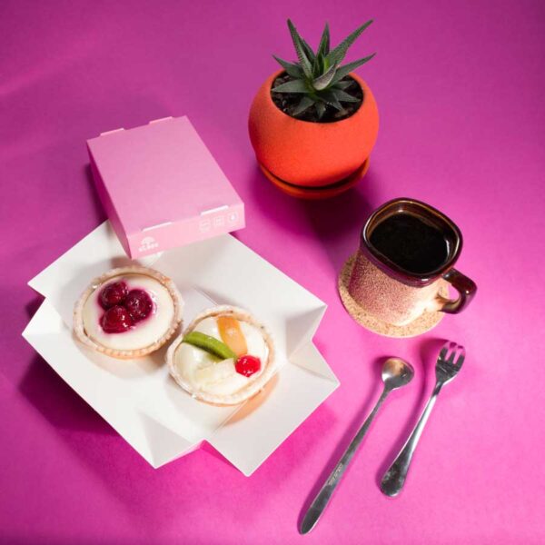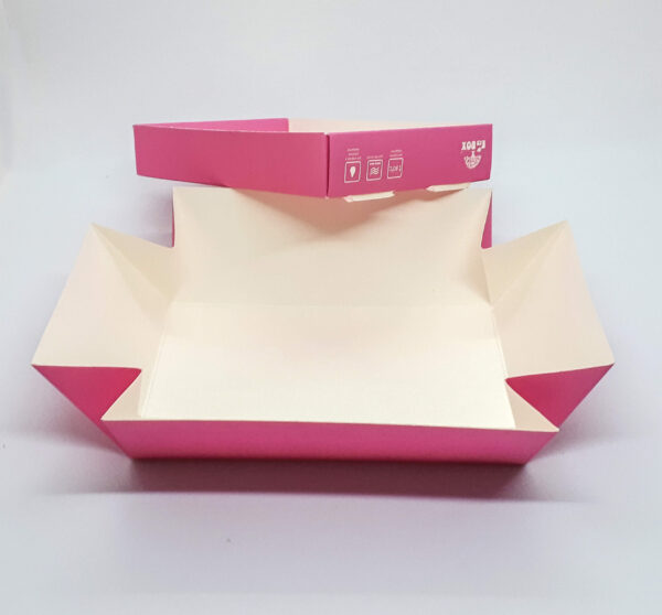 2 в 1 – це коробка + тарілка. При знятті кришки коробки, цільнокрійна основа розкривається, перетворюючись у тарілку. Наші коробки займають мало місця в складеному вигляді – при постачанні і після використання складаються в площину.