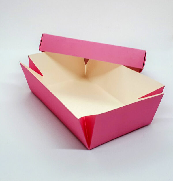 Коробка для десертів 10x15x5,5 см Pink. Упаковка виконана з жиростійкого картону. Внутрішня ламінація захищає від промокання.
