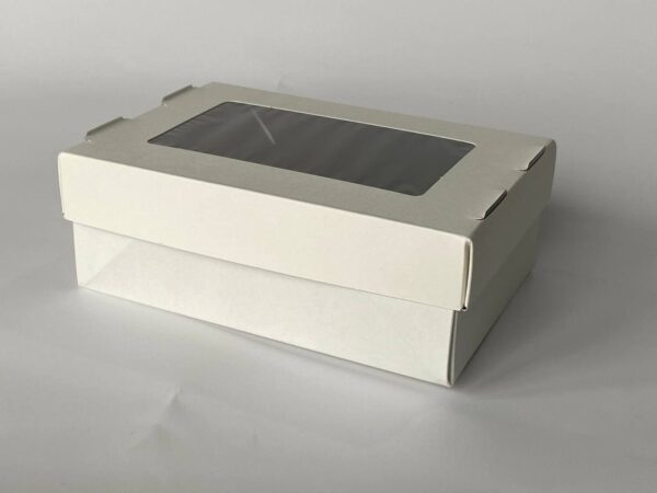 Завдяки додатковим замкам денця тримають форму і фіксується кришка. Упаковка виконана з жиростійкого картону. Внутрішня ламінація захищає від промокання.