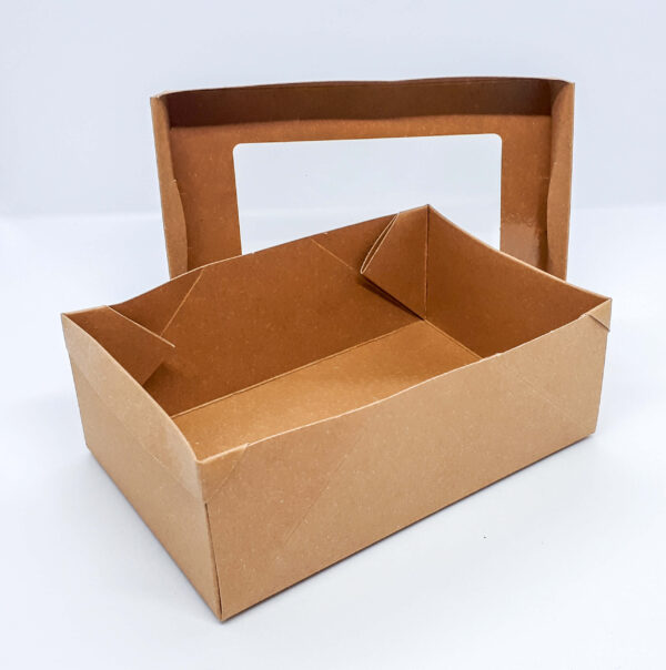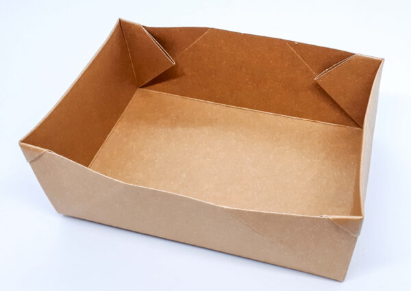 Завдяки додатковим замкам денця тримають форму і фіксується кришка. Упаковка виконана з жиростійкого картону. Внутрішня ламінація захищає від промокання.