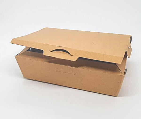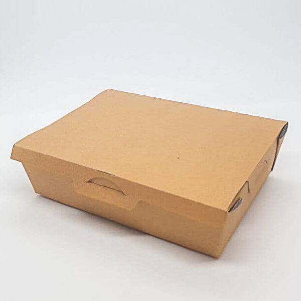 Універсальний крафт контейнер 190х150х50 мм. Упаковка виконана з жиростійкого матеріалу, внутрішня ламінація захищає від промокання.